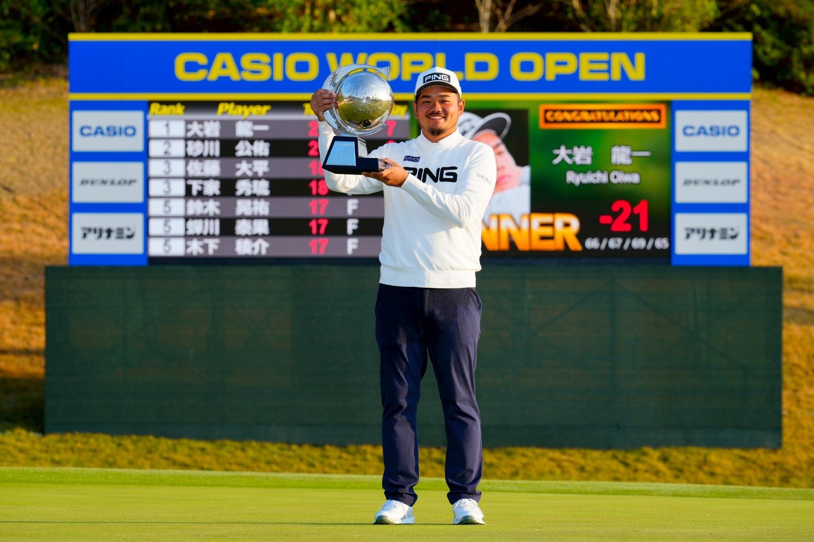 In regulation, both Oiwa and Sunagawa parred the par-five 18th on the first playoff hole. On the second trip down the same hole, however, Oiwa seized his chance, rolling in the winning birdie while Sunagawa could only make par.